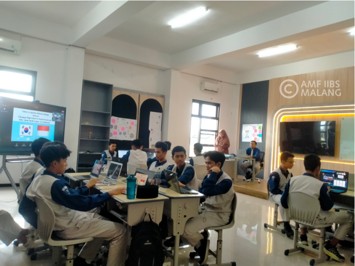 MALANG -- Sekitar 17 santri dari Pondok Pesantren Internasional Abdul Malik Fadjar (PPI AMF) Malang mengikuti program Global Leader School Exchange pada Selasa (18/11/2025). Mereka saling bertukar pengetahuan dan budaya secara daring dengan 17 siswa Incheon Cheongra High School, Korea Selatan.